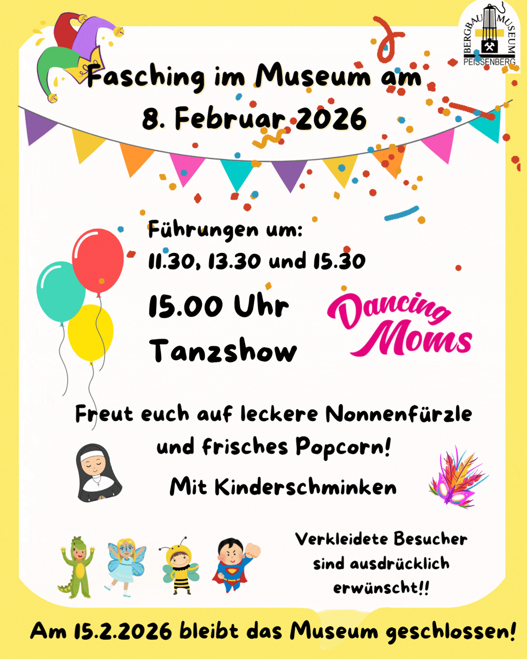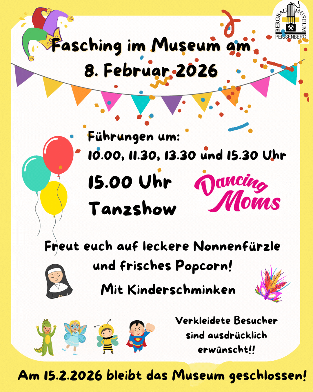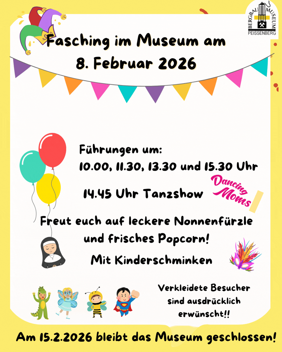 Am Sonntag, 15. Februar 2026 bleibt das Museum wegen des Peißenberger Faschingsumzugs geschlossen!