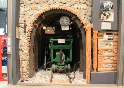 ÜberzeugT euch vom hohen Technologisierungsgrad des peißenberger Bergwerks in unserer Großexponatenhalle mit hydraulischen Schaustreb, Förderturm, Grubenlüfter und Grubenlok